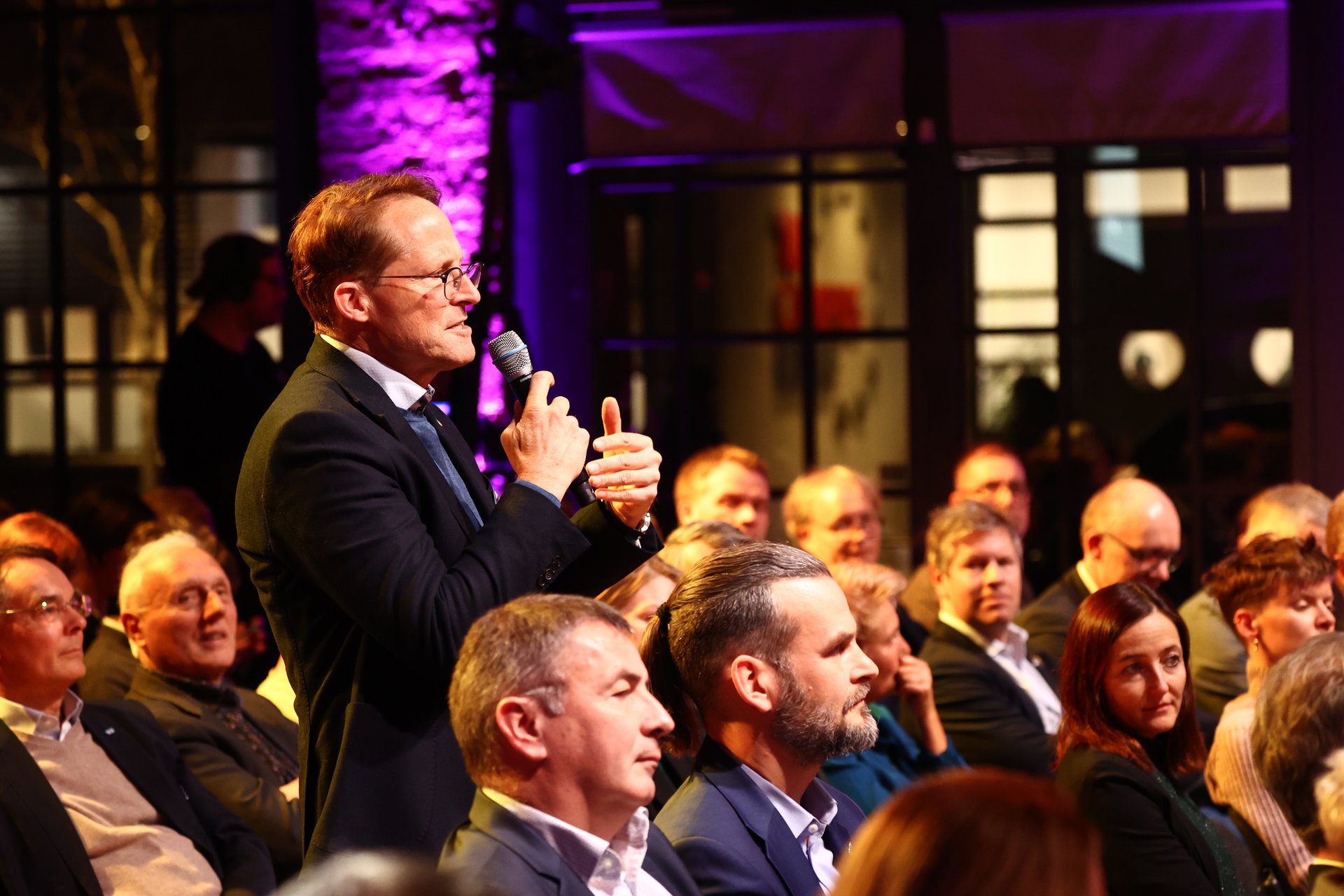 Makeiev berichtete über die Realitäten des Krieges in der Ukraine. Insbesondere jetzt, bei Minusgraden, bedeuten regelmäßige Stromausfälle, sich zwischen Heizen und Kühlschrank betreiben entscheiden zu müssen. Energieverfügbarkeit stehe hier nicht mehr „nur“ für Wirtschaft oder Klimaschutz, sondern für Sicherheit und Souveränität. Russland greife gezielt die kritische Infrastruktur der Ukraine an, von der Energie- bis zur Wärme- und Wasserversorgung. Laut Makeiev zielen diese Angriffe darauf ab, die Durchhaltefähigkeit, das Vertrauen in den Staat und den Zusammenhalt in Europa zu untergraben. Aus den Erfahrungen der Ukraine sollte auch Deutschland lernenBürgerinnen und Bürgern erfolgt, um Akzeptanz und Teilhabe zu sichern.