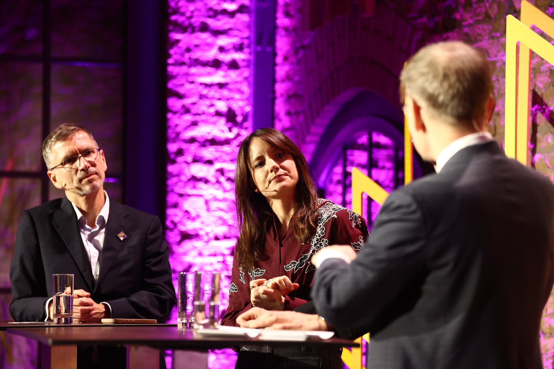 Im Anschluss begrüßten wir Dr. Bernd Weber, Geschäftsführer EPICO, Janina Mütze, Gründerin von Civey und Dr. Gunar Hering, Vorstandsvorsitzender von ENERTRAG zu einer spannenden Fokusdebatte zu den Themen Klimaneutralität, Versorgungssicherheit, Wirtschaftlichkeit und Demoskopie.