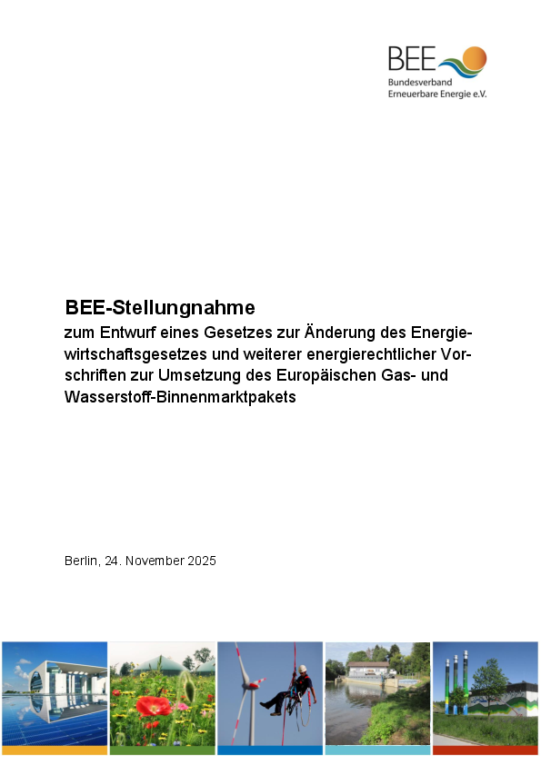 Mit dem vorliegenden Entwurf zur Umsetzung des europäischen Gas- und Wasserstoffbinnen-marktpakets schafft das BMWE wichtige Grundlagen für die zukünftige Ausrichtung der Gas- und Wasserstoffinfrastruktur. Aus Sicht des BEE ist dabei entscheidend, dass die Verteiler-netzentwicklungsplanung konsequent auf die Erfordernisse einer Erneuerbaren Energiewirt-schaft ausgerichtet wird. Verteilernetzentwicklungspläne können ein wirkungsvolles Instru-ment für einen geordneten Transformationsprozess sein – jedoch nur, wenn sie die Rolle von Biomethan und anderen erneuerbaren Gasen angemessen berücksichtigen und Investitions- sowie Planungssicherheit gewährleisten.